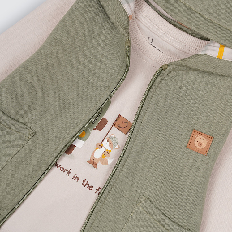 سه تیکه سوییشرت کلاهدار همراه با شلوار پنبه داخل کرک ،بلوز پنبه با چاپ و گلدوزی بینظیر و زیبا ، کیفیت عالی از برند پاپو
